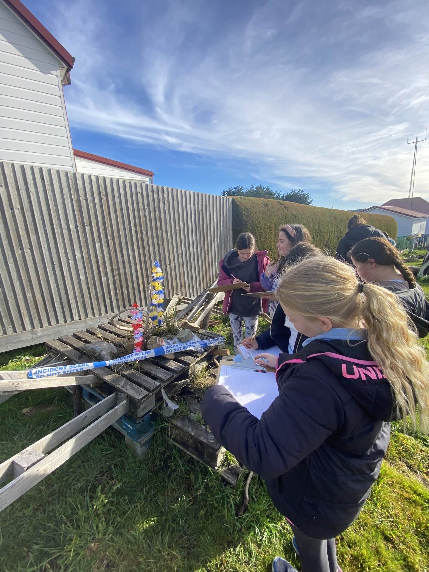 Year 5 - Detectives for the Day investigating a strange sighting in IJS&CE outdoor learning area.
