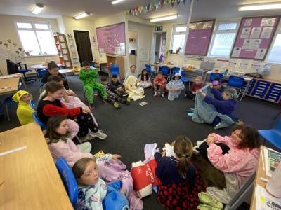 Year 5 - Detectives for the Day investigating a strange sighting in IJS&CE outdoor learning area.